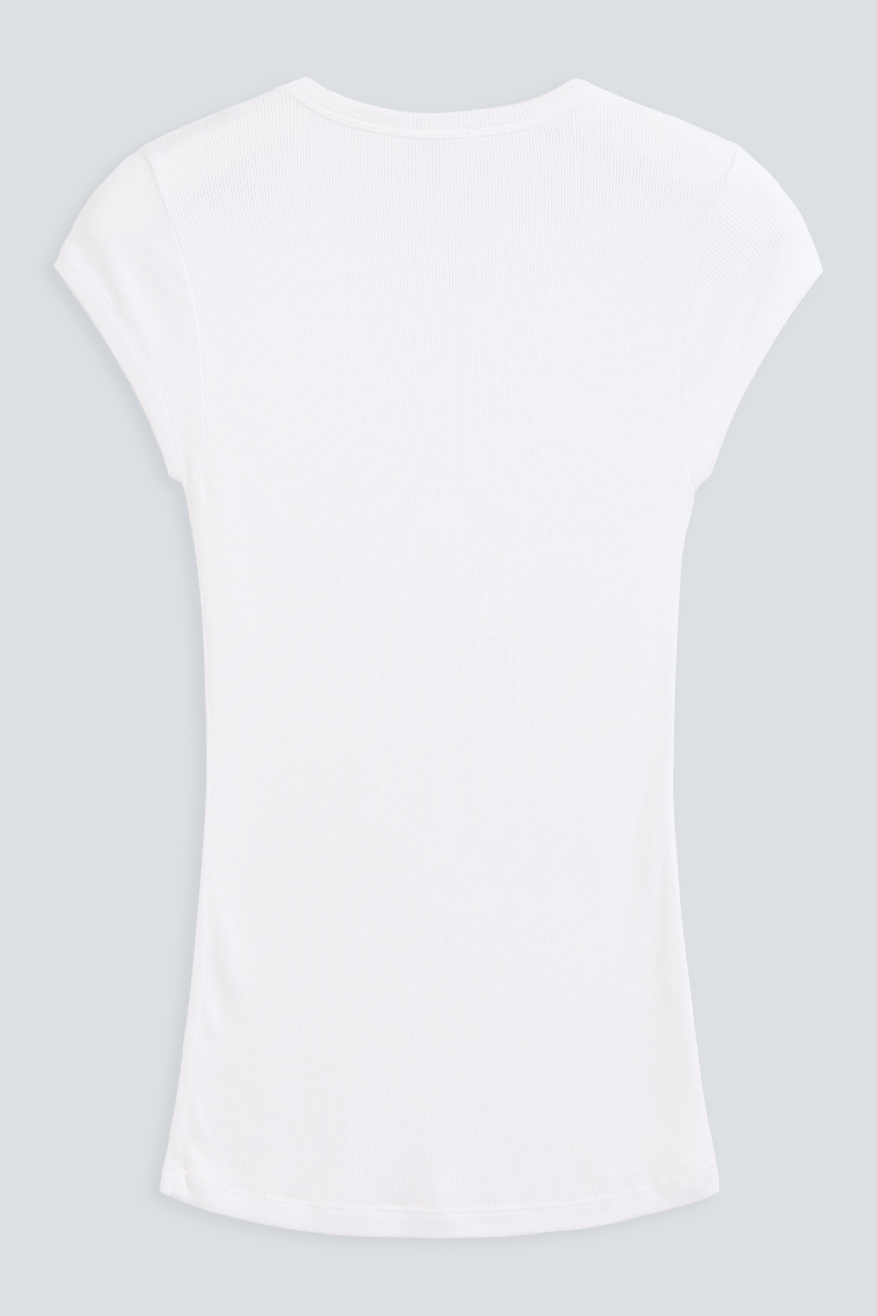 Understated and irresistibly soft. The Mika offers a close crew neckline, subtle cap sleeves, and a ribbed finish that keeps its structure while staying featherlight. And so soft, you never want to take it off.