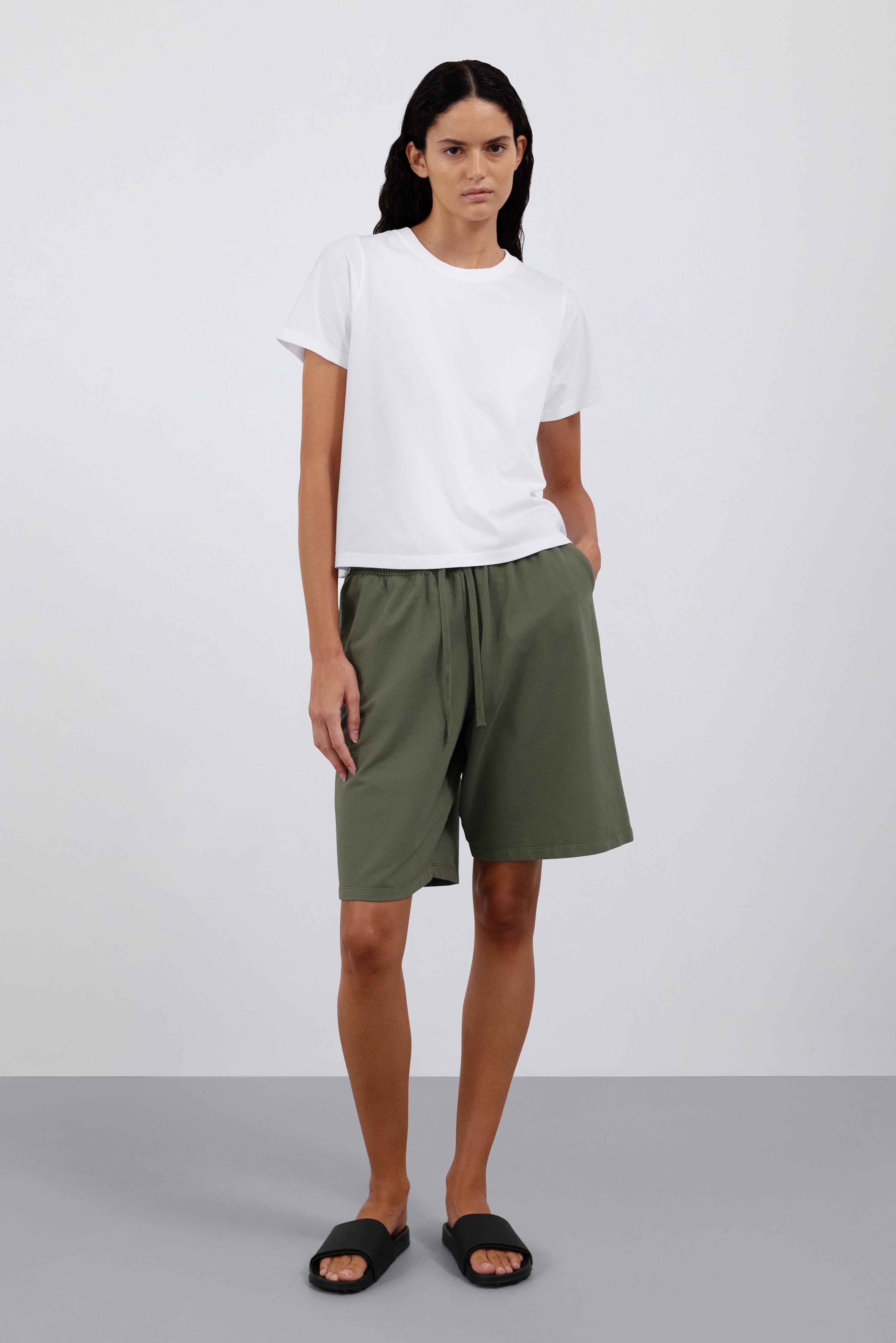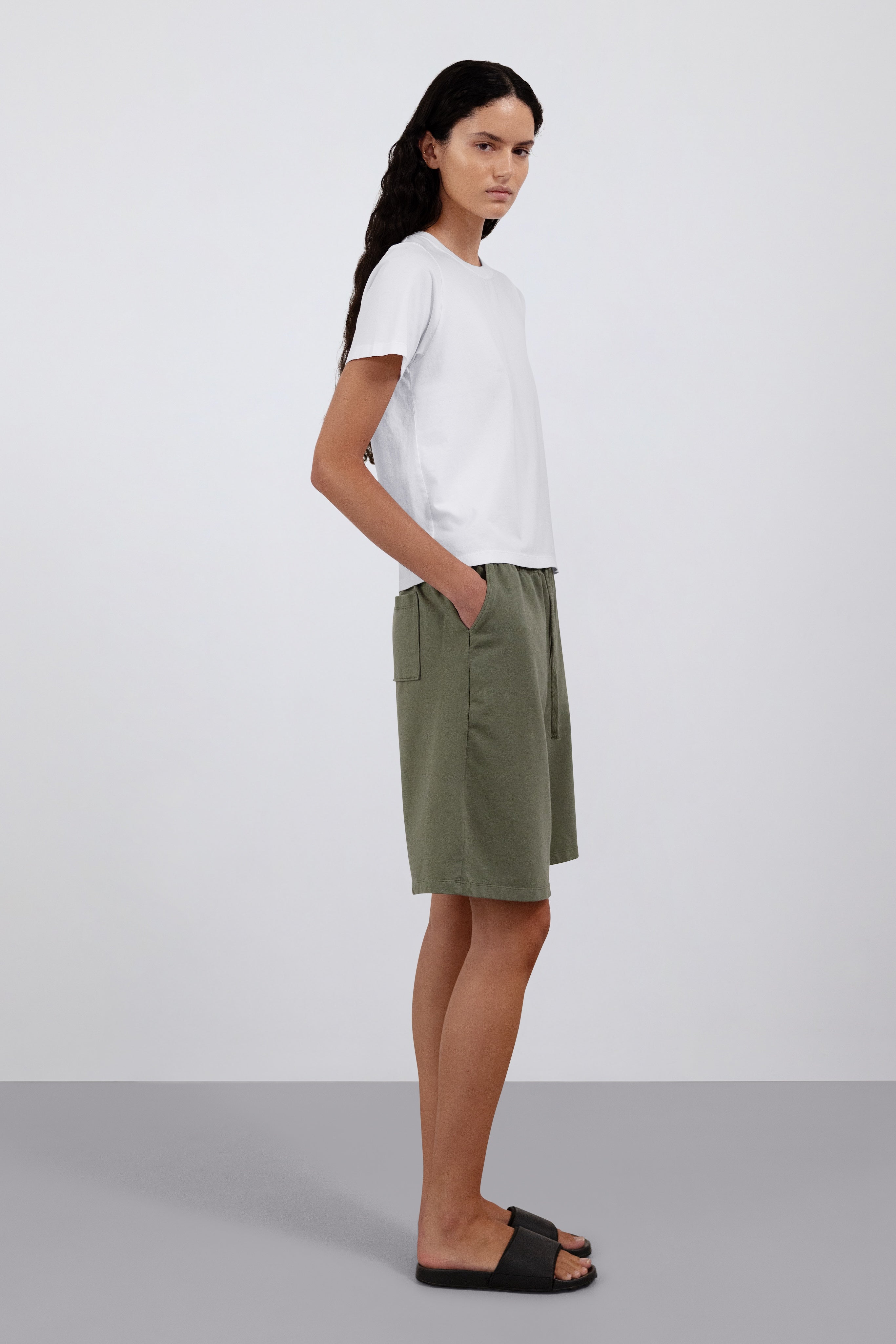 The Jill is a classic crew-neck T-shirt, refined through a heavier, beautifully structured jersey. It has a soft yet substantial feel, giving the silhouette a cleaner line and a touch more presence than a standard tee. It’s the kind of T-shirt that becomes a wardrobe constant. Reliable, versatile, and made to last.